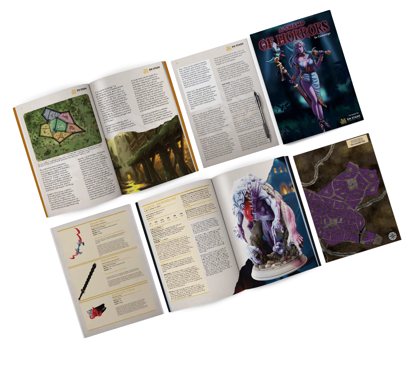 A Swamp of Horrors takes the party into the depths of the dangerous Lo Fuin to find the Drow responsible for unleashing monsters onto their neighbours and to bring them to justice. Though things won’t be easy, the Drow are illusive and hard to find, though they are said to have constant eyes on all trespassers in their lands.